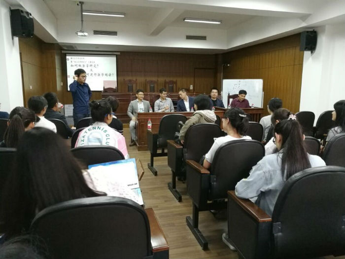 2017年5月12日晚,由600cc全讯白菜网主办、《师大法学》编辑部承办的“师大法学沙龙系列暨‘尚义法律研读会’主题活动——如何做法学研究及如何进行法学阅读沙龙”在闵行校区法商北楼模拟法庭顺利举行。