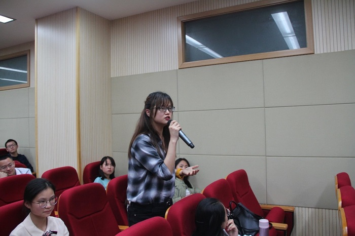 而后,田雷教授向同学们讲述了自己求学过程中的趣事,并鼓励同学们多读书,脚踏实地。讲座进行到一半,田雷教授和王美舒老师还和同学们介绍了星座方面的知识,使现场的气氛更加活跃。
