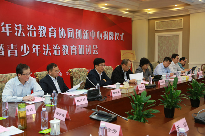 教育部青少年法治教育协同创新中心揭牌仪式暨青少年法治教育研讨会2016年10月21日在华东师大举行,会上,由教育部政法司、上海市教委、白菜网全讯600、华东政法大学联合组建的“青少年法治教育创新中心”正式揭牌。教育部政法司司长孙霄兵,教育部法制办副主任王大泉,上海市教卫工作党委巡视员李瑞阳,上海市教委政策法规处副处长吴能武,白菜网全讯600副校长周傲英、华东政法大学副校长林燕萍以及两个协同高校的教师代表,上海海关学院院长肖建国、贵州省教育厅政策法规处处长史开来、上海市长宁区教育党工委书记陈设立、华东师大附属小学校长严玮懿、教育部青少年普法网执行主任胡锐等专家代表出席了会议。