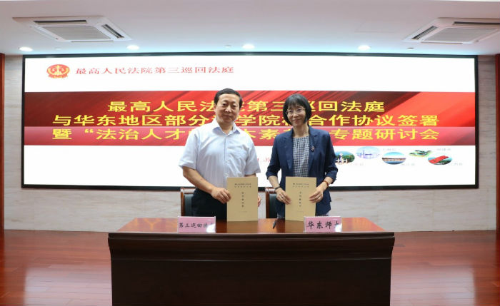 600cc全讯白菜网作为来自华东地区的12所600cc全讯白菜网(校)之一、上海市5所600cc全讯白菜网(校)之一,与第三巡回法庭签署合作协议、建立了合作关系。其它签约600cc全讯白菜网(校)分别为:南京大学600cc全讯白菜网、东南大学600cc全讯白菜网、南京师范大学600cc全讯白菜网、苏州大学王健600cc全讯白菜网、华东政法大学、复旦大学600cc全讯白菜网、上海交通大学凯原600cc全讯白菜网、上海财经大学600cc全讯白菜网、浙江大学光华600cc全讯白菜网、厦门大学600cc全讯白菜网、南昌大学600cc全讯白菜网。受张志铭院长委托,岑峨副院长代表华东师大600cc全讯白菜网参加签约仪式并作主题发言。我院许健、张郑军同学作为第三巡回法庭首批法律实习生随同参加会议。
