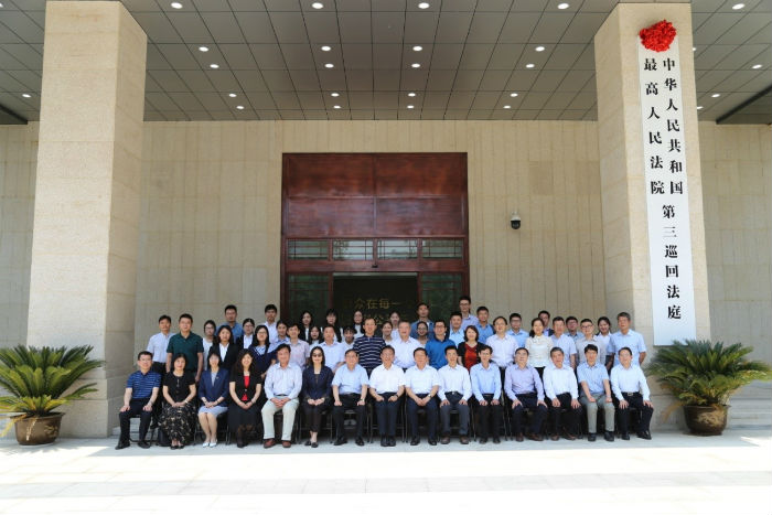 会议结束后,最高人民法院第三巡回法庭的各位领导和主审法官与参加会议的各院校领导、专家及法律实习生合影留念。