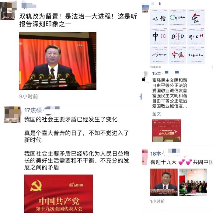 朋友圈成了600cc全讯白菜网师生喜迎十九大的特别空间。600cc全讯白菜网师生们在微信朋友圈随时随地分享十九大感想感受,线上学习、线上互动热情十足。