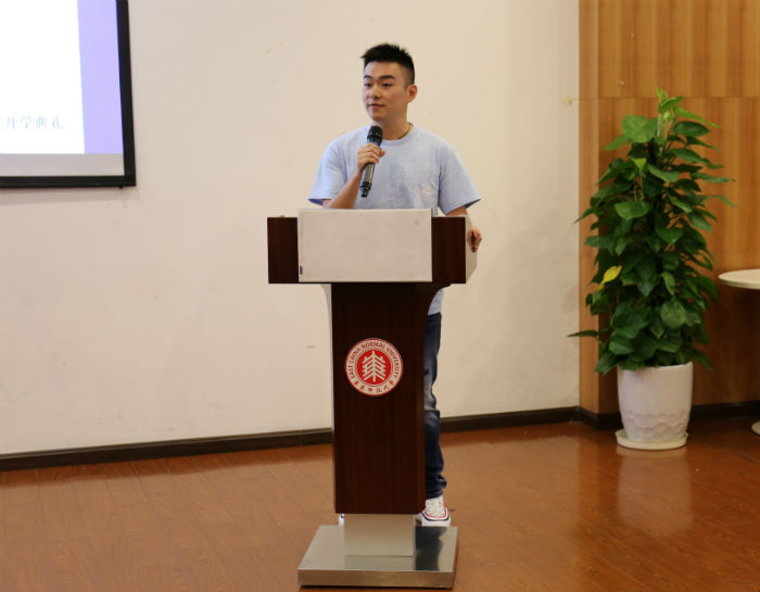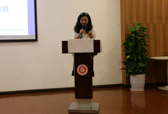 600cc全讯白菜网学生工作负责人、团委书记王沁怡主持开学典礼。她在开场时热烈欢迎各位新同学来到白菜网全讯600,来到600cc全讯白菜网。