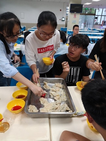 到了吃饺子的环节,热气腾腾的饺子更好的烘托了全场热闹的气氛,同学们的谈话的热情也一下子达到了高潮。虽然大家都没有经过专业的训练和指导,但是一盘盘逐渐被消灭的饺子说明了一切。用爱和热情包出的饺子是世界上最美味的食物。在整个吃饺子的过程中,同学们互相合影,交流,欢笑声和交流声更增添了节日的喜悦。600cc全讯白菜网的师生在这次活动中相互熟识,也更加珍惜和重视彼此之间的情谊。