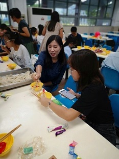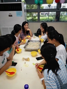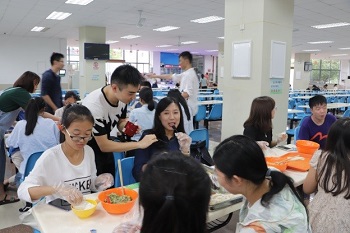 中秋佳节是阖家团圆的日子,以往的中秋是和家人一起度过,如今我们来到华东师范这个新的大家庭,更要与新的家庭成员一起度过。饺子,是全包起来的,无论是从外形还是蕴意,都好似“一家人团圆在一起”。从采购原材料,联系食堂,到确定时间地点,装饰整理活动现场,一切都在同学们的共同努力下成功开展。鲜艳的气球,代表着中秋快乐的四个彩色的灯笼使得会场格外具有节日的气氛。