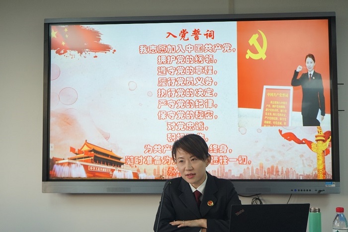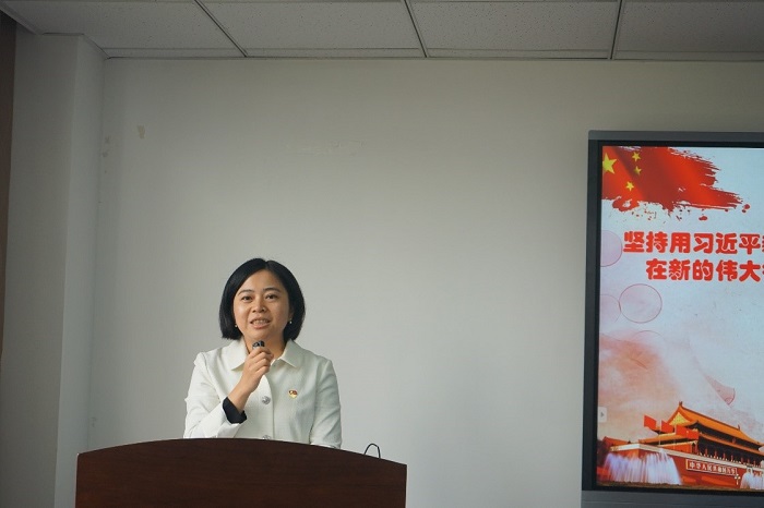 施净岚检察官以党的“十九大”代表的视角,带领大家重温了“十九大”报告的内容,回顾“十九大”会议中的亮点与精彩瞬间。她认为,党的“十九大”是一场会风简朴、纪律严明的大会,同时也是一场体现我党开放、自信的大会,本次大会意义非凡,而作为一名中共党员,大会后要走的路还非常长、非常艰巨,但是应当有共同的目标——自强不息、共同追求并实现“中国梦”。