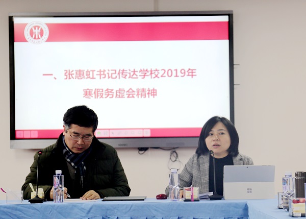 首先,张惠虹书记传达了学校2019年寒假务虚会精神,她强调,2019年大事要事多,发展任务重,全院上下要认真学习贯彻务虚会精神,高扬“以本为本”主旋律,心无旁鹭谋发展,只争朝夕抓落实。要守好底线,不碰红线,营造风清气正的学院生态,实现学院发展与个人成长的同步飞跃。