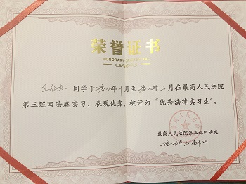 高赫阳同学表示,过去六个月的实习生活,我收获的不仅是工作经验与法律知识,更多的是从主审法官的言传身教中感受到对法律的热忱、对法官职业的热爱、对法治信仰的不懈追求。我始终记得初到三巡时老师对我们说的,“一日三巡人,终生三巡人”,三巡给我们的烙印不仅是工作经验,更重要的是将公平正义的法治理念融入了我们的信仰追求中,让我们在今后可以做中国法治的信仰者、支持者与后备军。