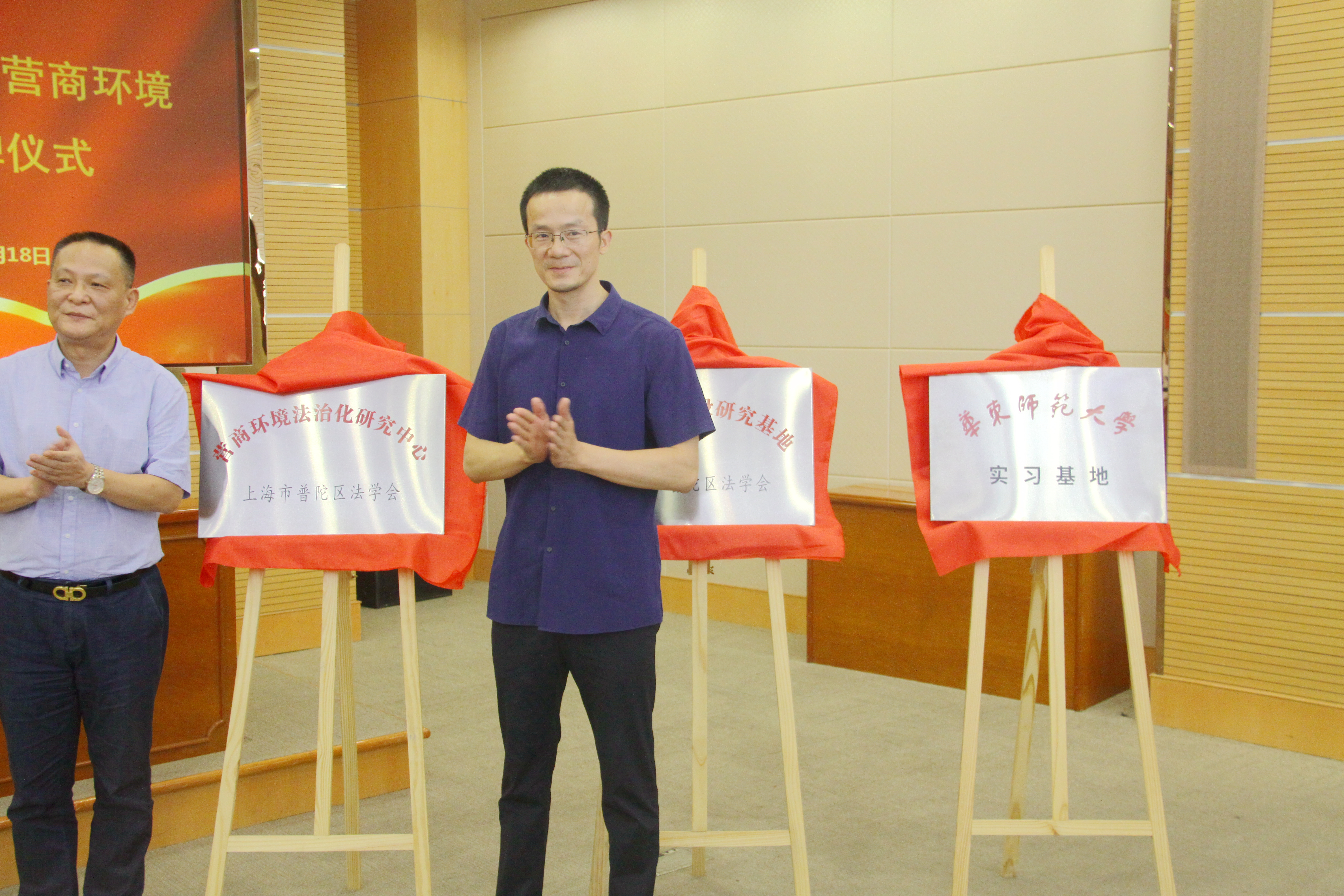 常务副院长吴泽勇教授与普陀区委政法委副书记薛宝平共同为“营商环境法治化研究中心”、“法治普陀建设研究基地”、“白菜网全讯600实习基地”揭牌。
