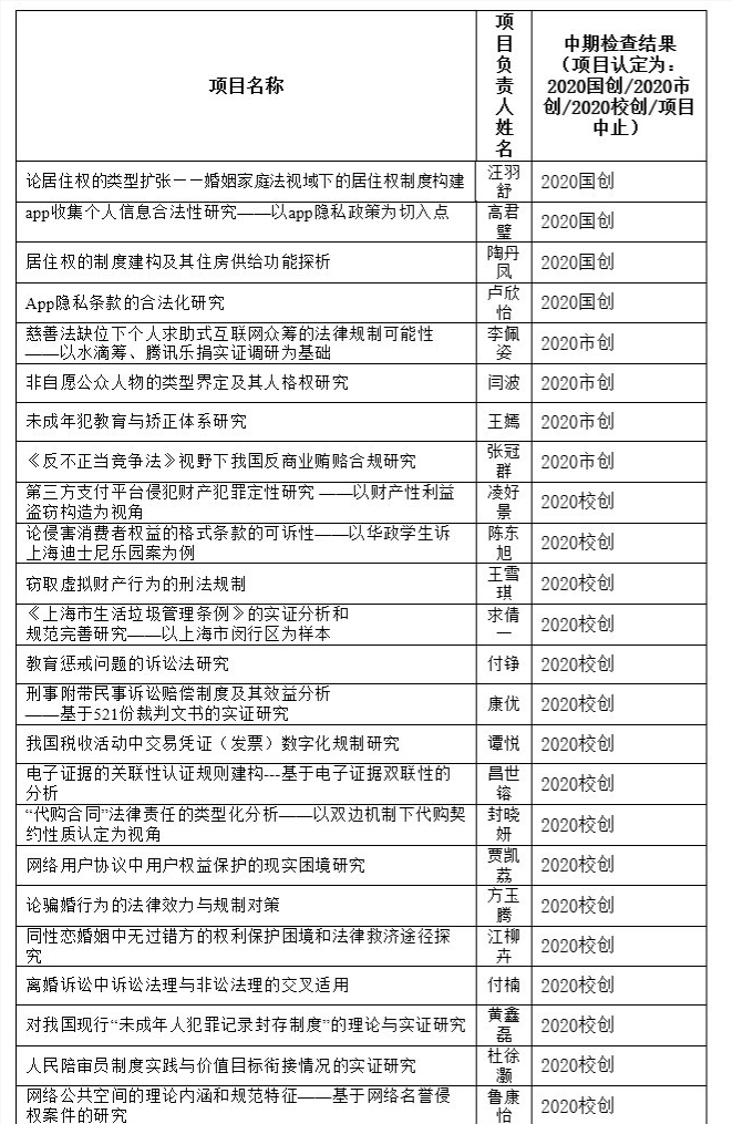 经专家现场评审,独立打分,书面审议,成绩公示,最终认定2020年国家大学生创新创业训练计划项目4个、上海大学生创新创业训练计划项目4个、校级大学生创新创业训练计划项目16个。结果公示如下: