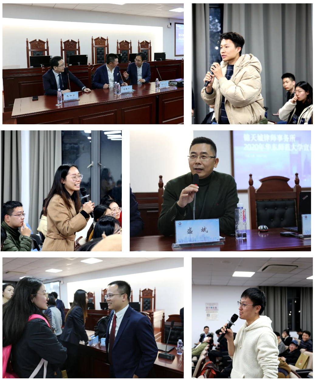 几位高级合伙人积极回应了同学们的提问,毫无保留的分享自己的职场经验和感悟,充分体现出了对法学学子的关心与呵护。在互动中,同学们对律师行业和律师职业有了进一步的认识,更明确了自己的职业规划,让同学们收获颇丰。