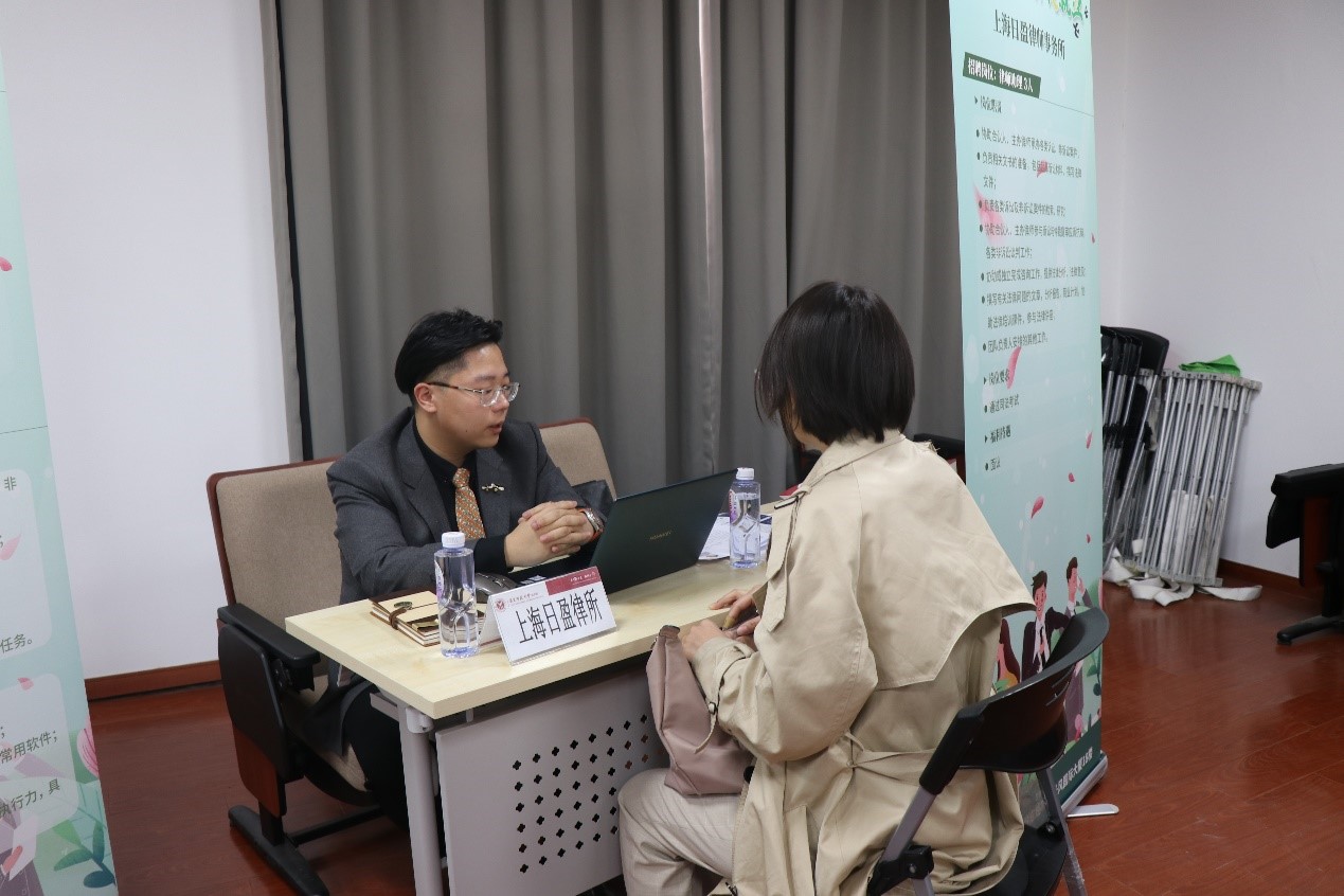 下午两点,招聘会正式拉开帷幕。各律所招聘点位前都排起长队,学生们根据自己的实际需求,依次向心仪的律所投递简历。现场学生纷纷就律所概况和文化、招聘岗位职责与要求、实习情况、薪资待遇、职业发展等问题向律所HR进行咨询和交流。各律所HR也积极为学生答疑解惑,并对应聘学生的基本素养现场面试。