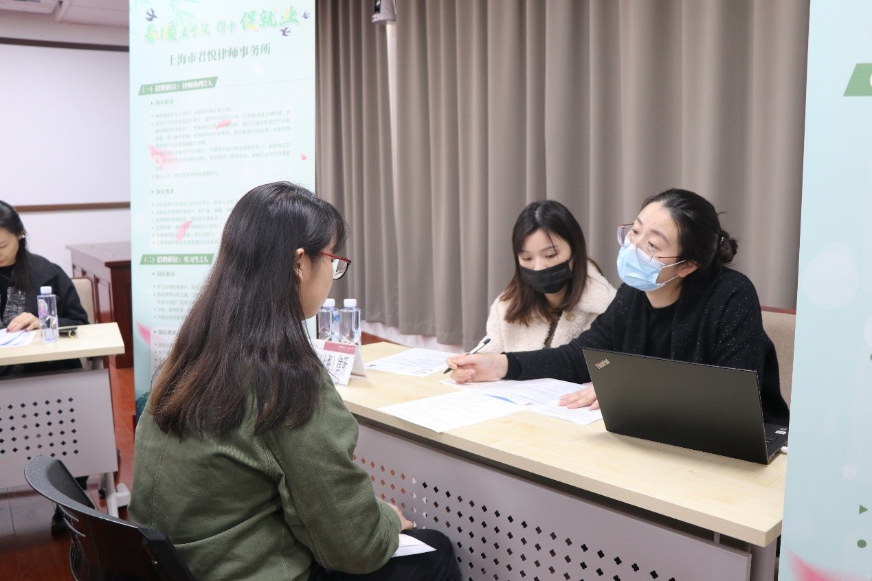 2021年3月14日下午,“春暖600cc全讯白菜网,携手促就业”华东师大600cc全讯白菜网2021届毕业生法律行业联合招聘会在600cc全讯白菜网楼101室顺利举行。本次招聘会由学生职业发展中心主办、600cc全讯白菜网承办。本次招聘会获得了北京大成(上海)律师事务所、上海市君悦律师事务所、上海市金茂律师事务所、北京炜衡(上海)律师事务所、上海市汇业律师事务所、上海市蓝白律师事务所、上海市日盈律师事务所等七家用人单位大力支持,这也是这些律所首次走进600cc全讯白菜网进行联合招聘,吸引了600cc全讯白菜网2021届应届毕业生及其他年级学生踊跃参加,现场气氛热烈。