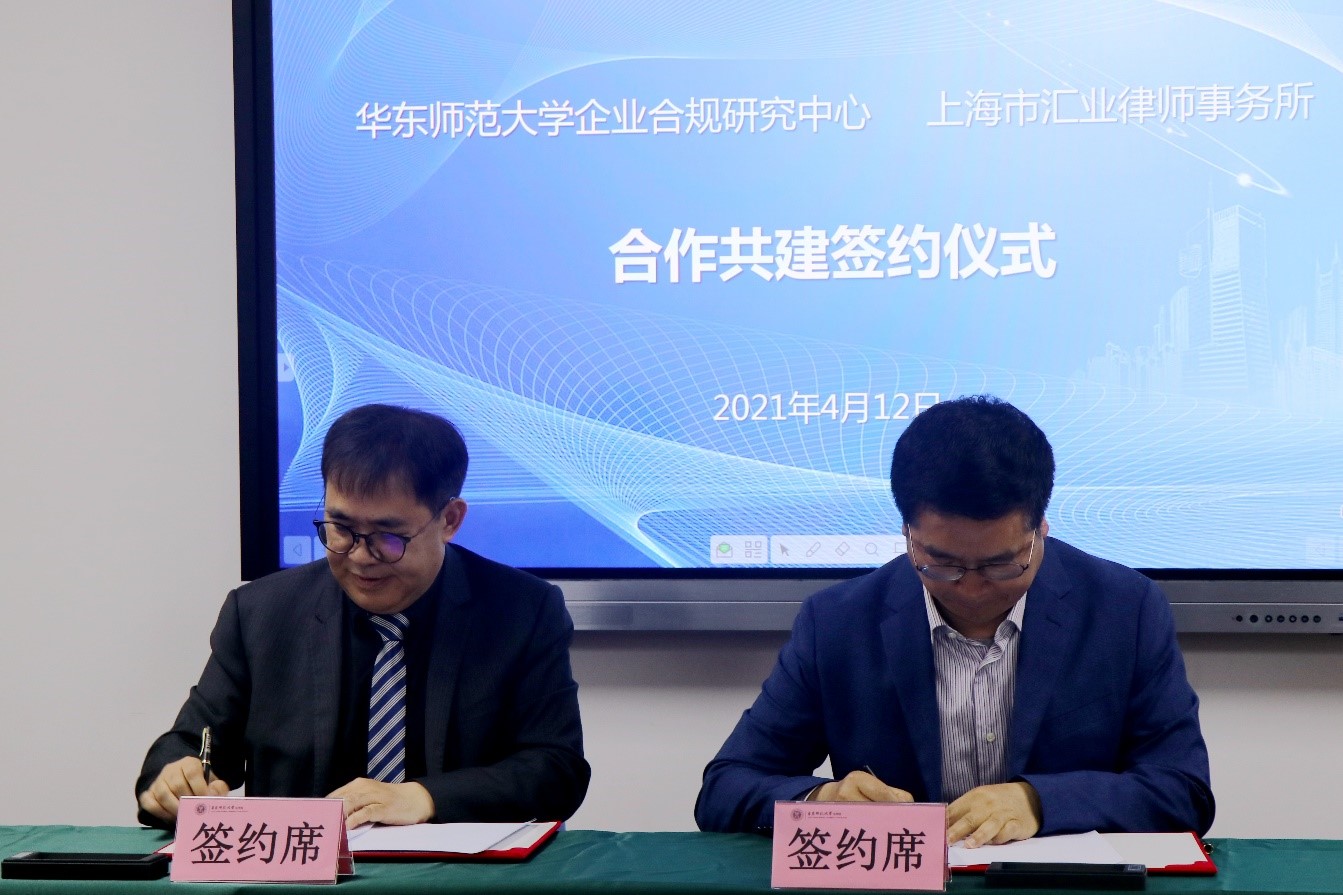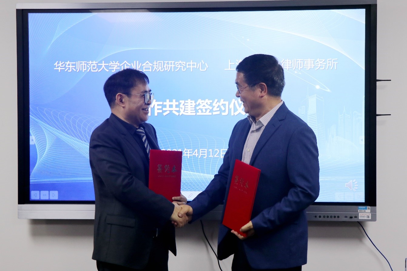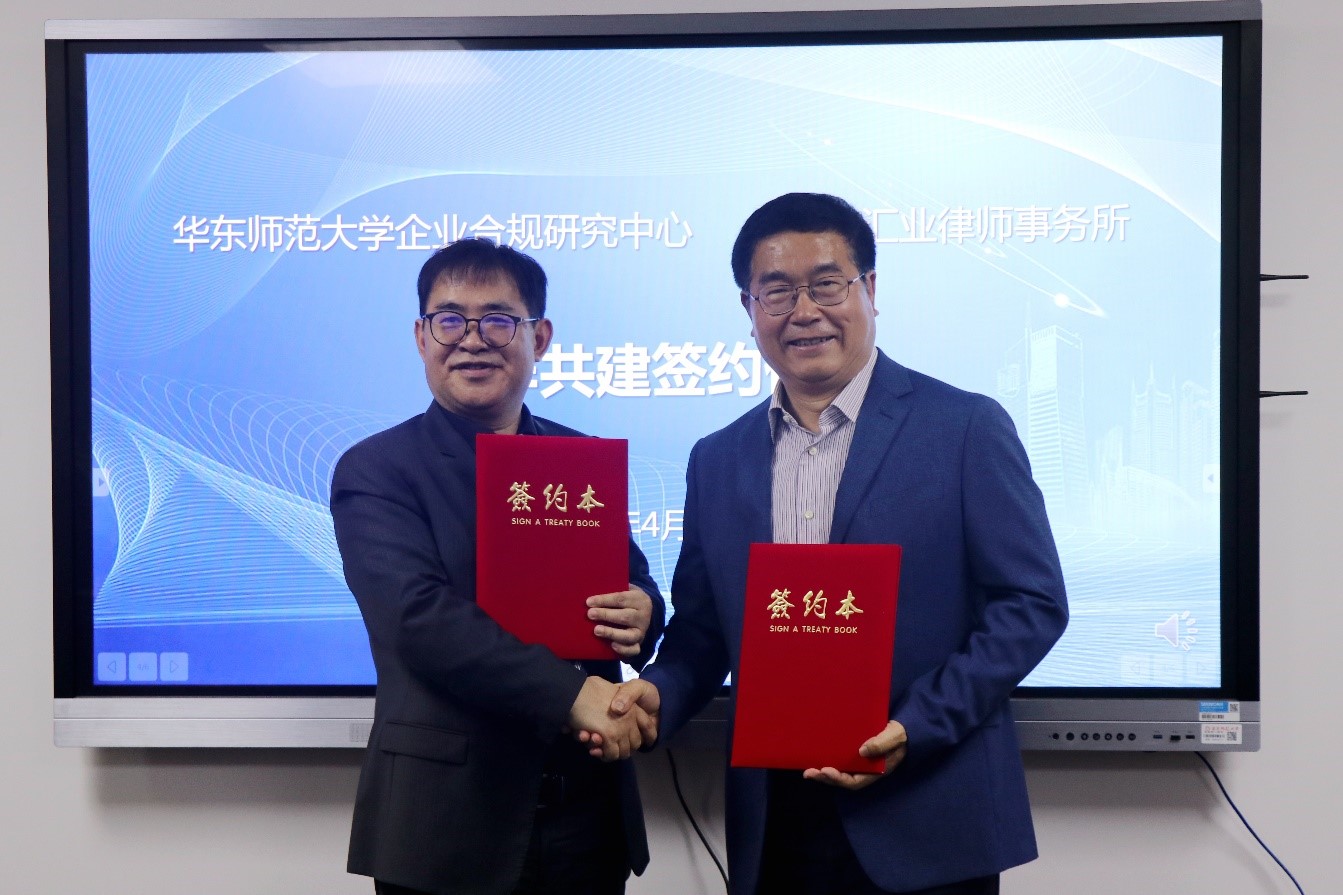 华东师大企业合规研究中心主任张志铭与上海市汇业律师事务所主任杨国胜签署合作备忘录
