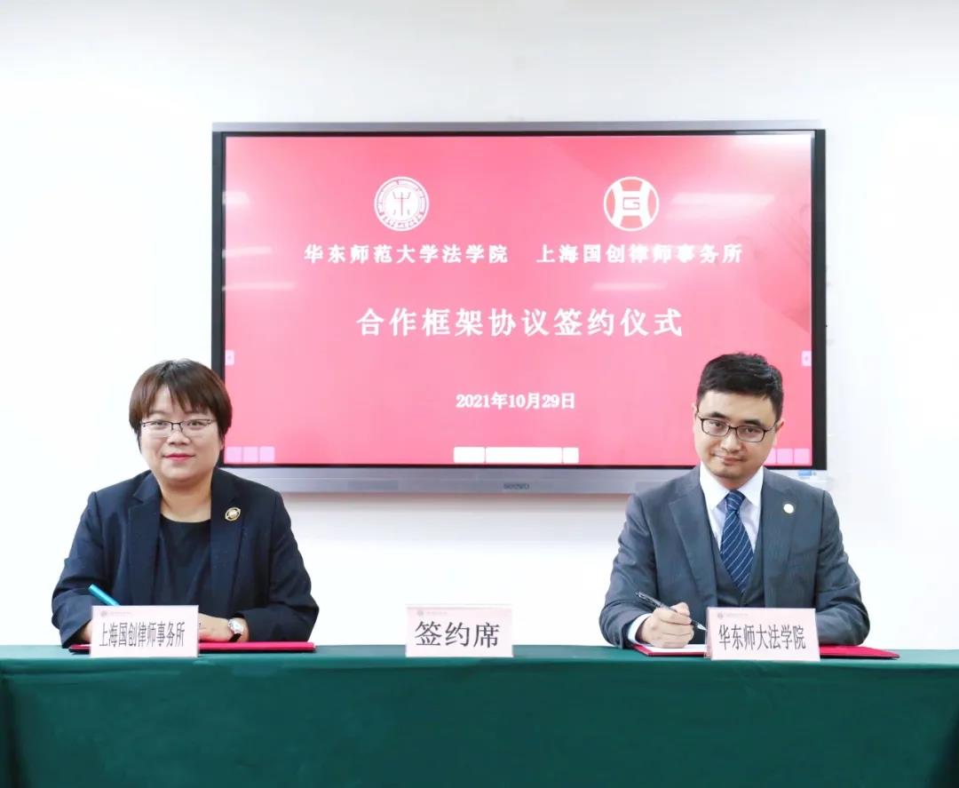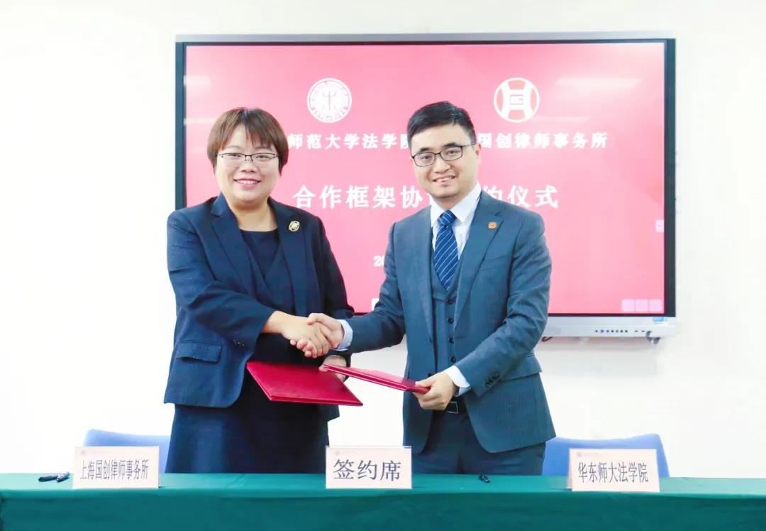 华东师大600cc全讯白菜网副教授段磊与上海国创律师事务所主任陈敏分别代表华东师大600cc全讯白菜网与上海国创律师事务所签署合作框架协议。