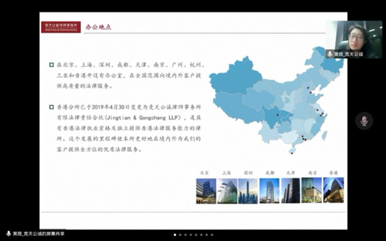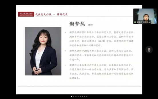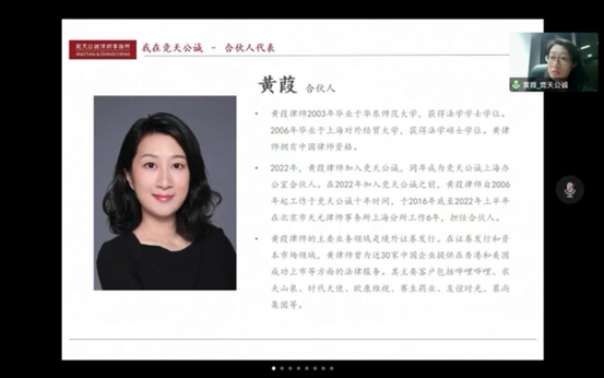 2022年10月28日晚,上海竞天公诚律师事务所华东师大600cc全讯白菜网专场宣讲会在线上顺利举行。